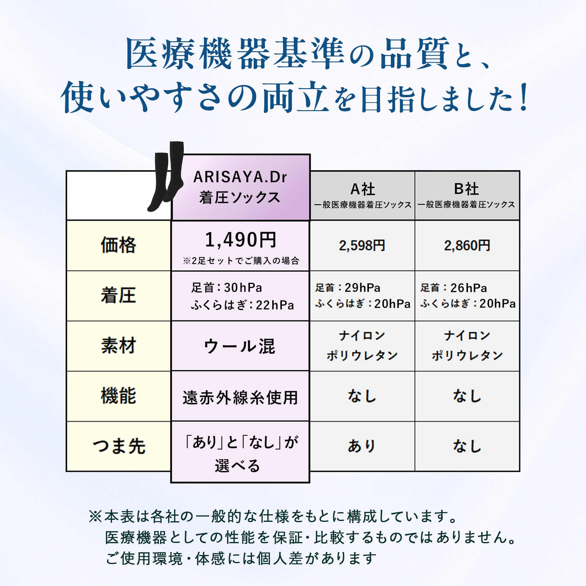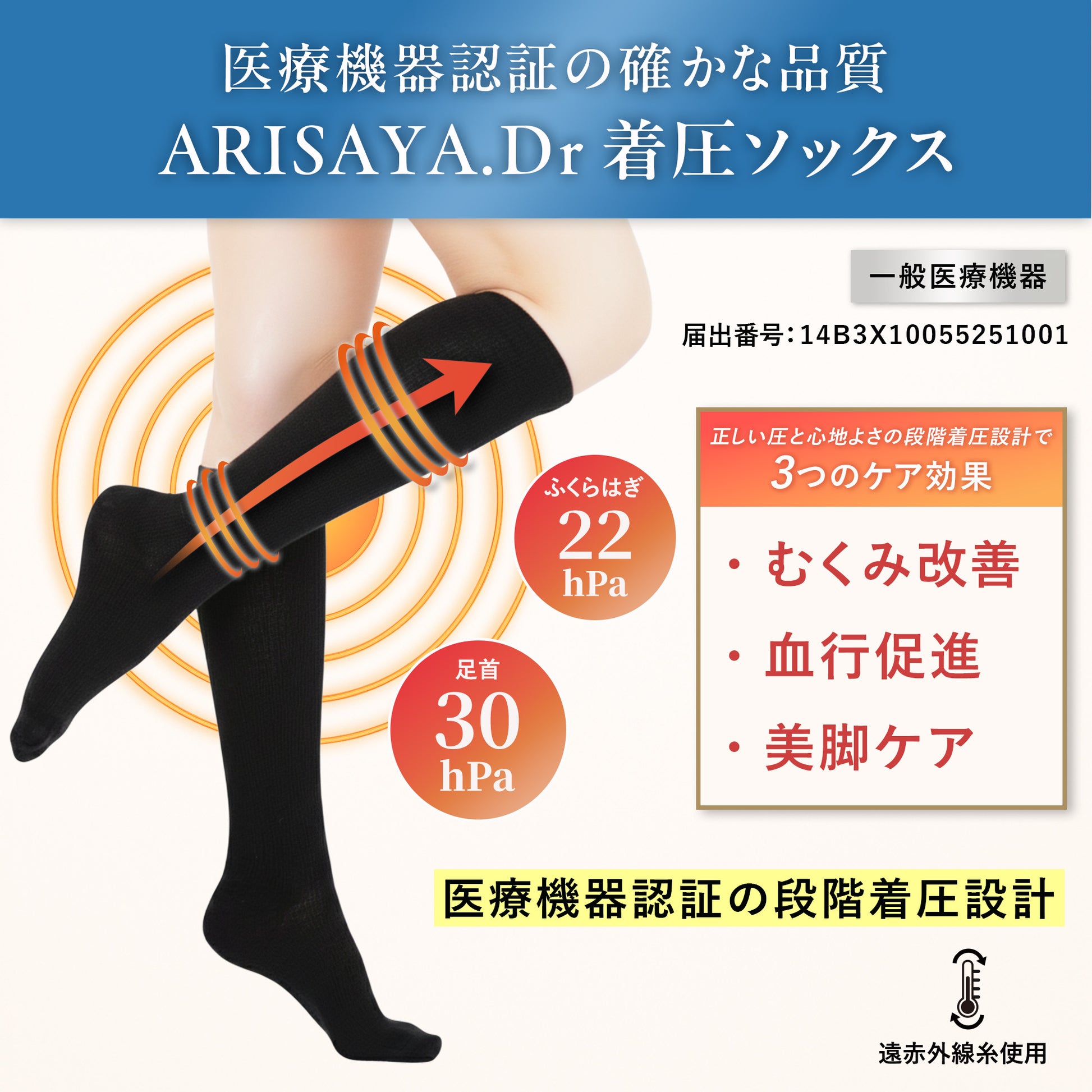 【ARISAYA】 ARISAYA.Dr 着圧ソックス むくみ リンパ 美脚 一般医療機器 弾性ストッキング 引き締め 着圧靴下 ふくらはぎサポーター 脚サポーター レディース メンズ 産後 高齢者 つま先あり ノーマルタイプ ブラック